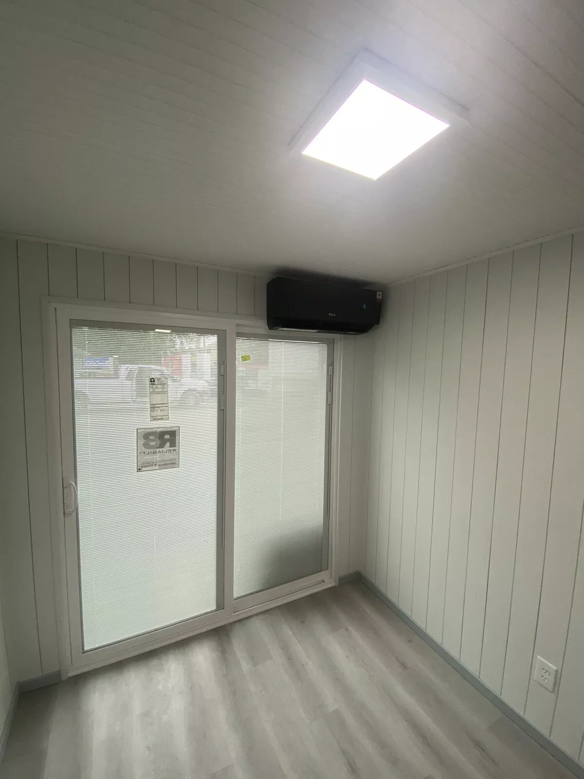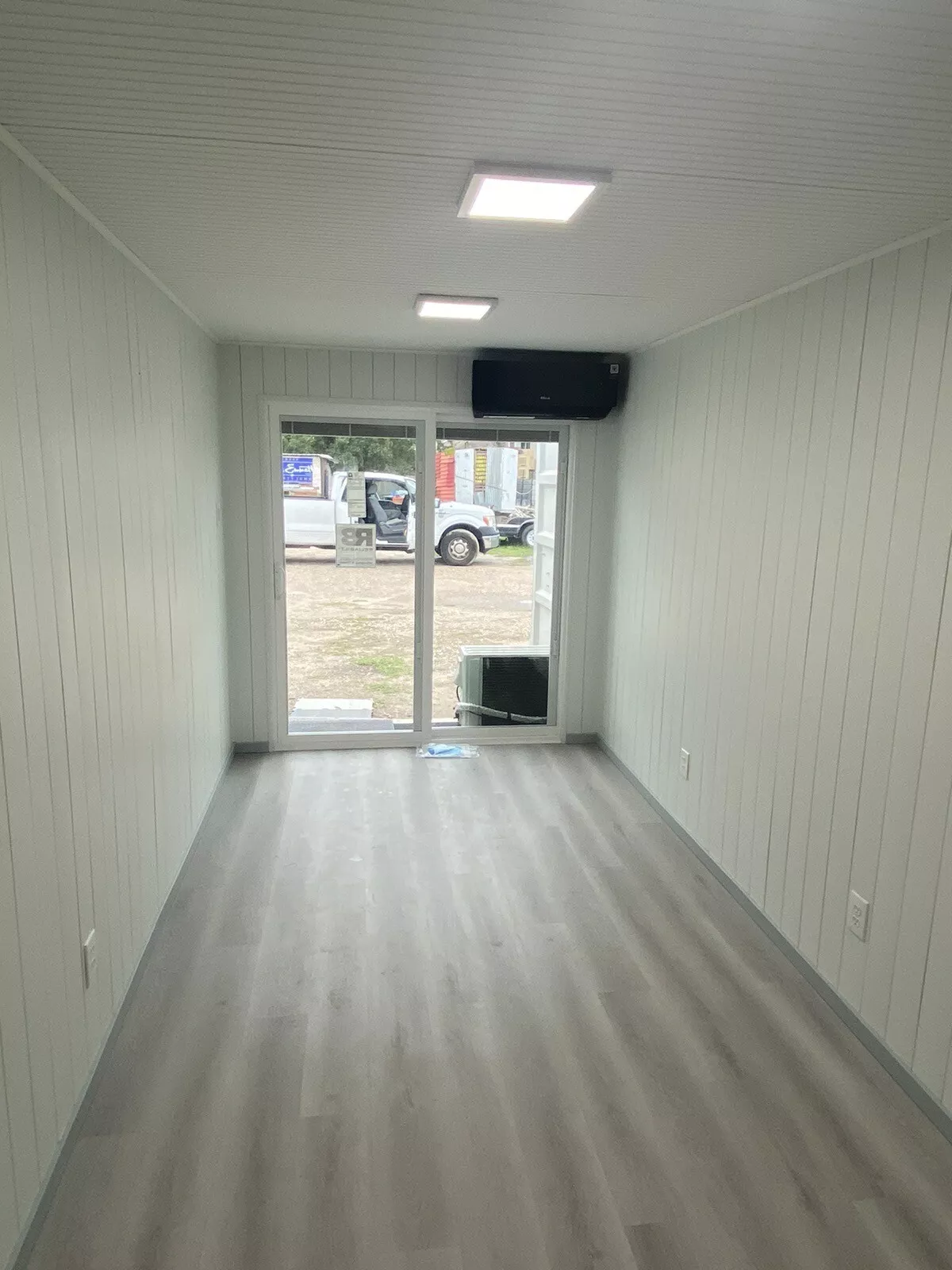 This 20’ mobile office container is perfect for your business needs. It is made of high-quality steel material and is unused. The container has a ranch style and measures 20ft in length, 8.3ft in width, and 8.5ft in height, with a total square footage of 160. It features one bedroom and is manufactured by Guangdong Fuwa Equipment. This prefabricated building is ideal for those in need of modular and prefabricated buildings in the business and industrial sector.